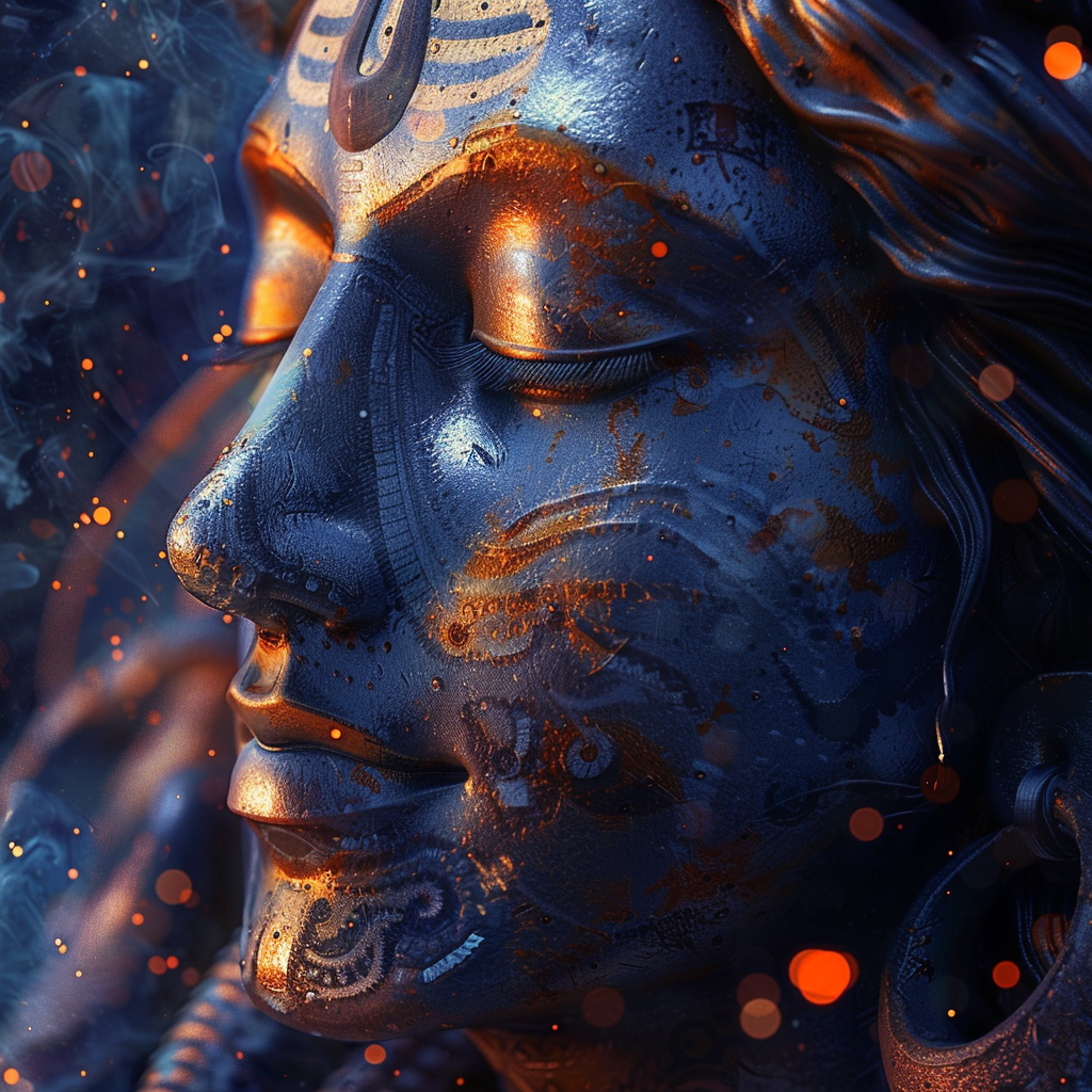 Shiva, one of the principal deities in Hinduism, embodies the roles of both destroyer and transformer within the holy trinity, alongside Brahma the creator and Vishnu the preserver. Revered for his power to bring about renewal and change, Shiva's multifaceted nature is symbolized through his various attributes, including the third eye representing insight, the trident symbolizing his control over the three realms, and the serpent signifying his mastery over primal energy. Often depicted in deep meditation or performing the cosmic dance of Tandava, Shiva's essence transcends mere mythology, offering profound insights into consciousness, spirituality, and the cyclical nature of existence.