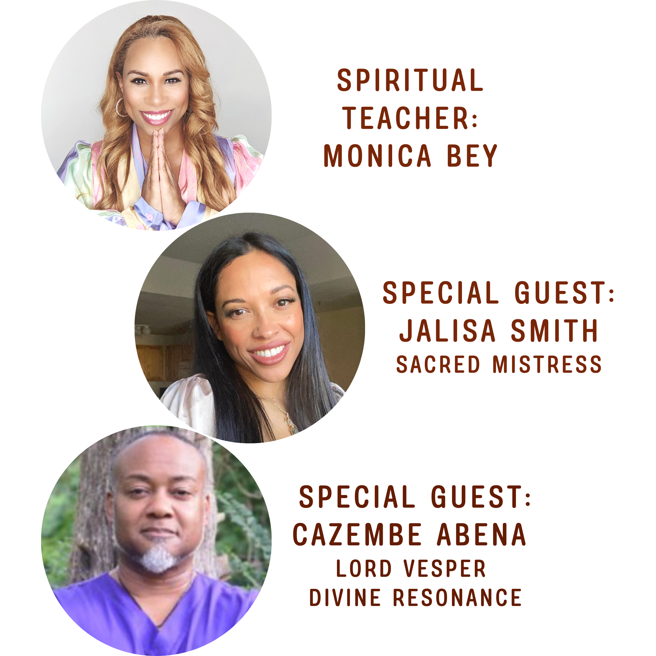 Join renowned experts Monica Bey, Jalisa Smith, and Cazembe in this two-session class as they guide you through an exploration of sacred sexuality, manifestation, spiritual connection, and personal empowerment. Gain a deeper understanding of sexual energy and learn how to harness its immense power to enrich your life, enhance your spiritual path, and cultivate profound transformations.